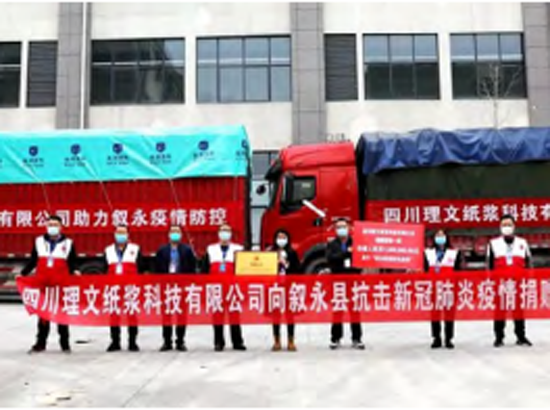 2022年10月14日,四川理文紙漿科技有限公司向敘永縣紅十字會捐贈一批價值人民幣100萬元的物資,包括50萬元的防疫物品和50萬元資金,助力敘永抗擊新冠肺炎疫情。